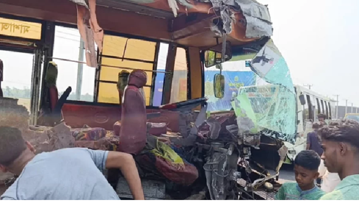 পুলিশ ও প্রত্যক্ষদর্শীরা জানায়, সড়কের পাশে খড়ে আগুন দেয়ার ফলে সৃষ্ট ঘন ধোঁয়ায় পুরো এলাকা ঢেকে যায় এবং দৃষ্টিসীমা প্রায় শূন্যে নেমে আসে। এতে দুটি ঈগল পরিবহনের বাস মুখোমুখি সংঘর্ষে জড়িয়ে পড়ে। একই সময় মারসা পরিবহনের একটি বাস নিয়ন্ত্রণ হারিয়ে সড়কের পাশে থাকা পিলারের সঙ্গে ধাক্কা খেয়ে মারাত্মকভাবে ক্ষতিগ্রস্ত হয়।