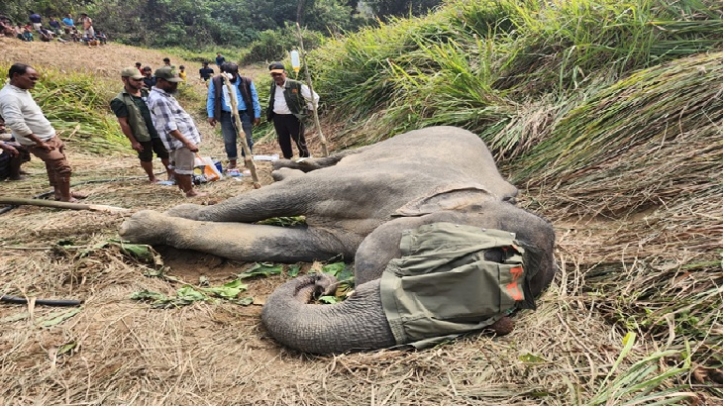 পাহাড় থেকে পড়ে বন্য হাতির মৃত্যু