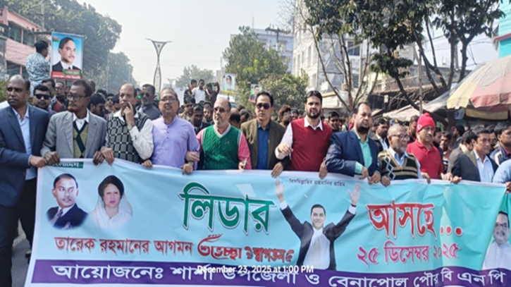 মঙ্গলবার (২৩ ডিসেম্বর) দুপুর ১২টায় বেনাপোল বল ফিল্ড থেকে এ মিছিলটি শুরু হয়।