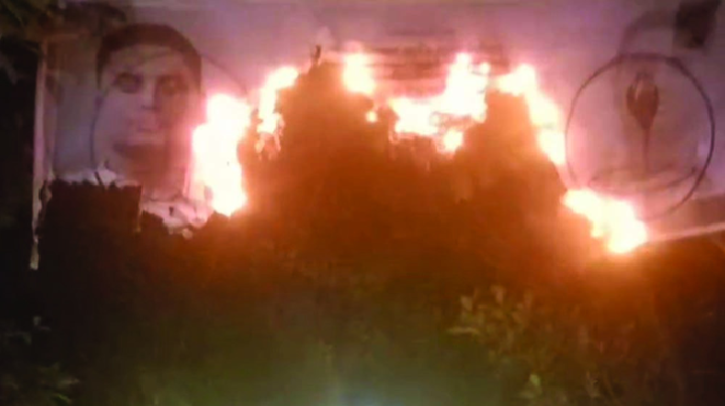 হাসনাতের ব্যানারে আগুন, এলাকায় উত্তেজনা