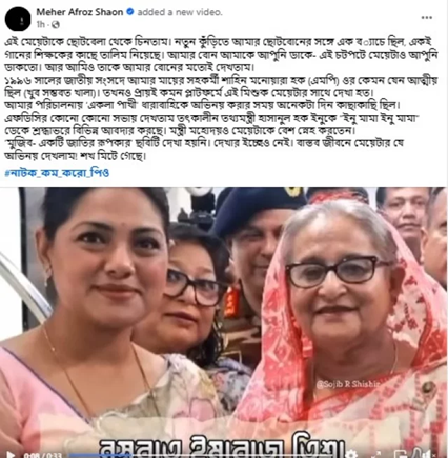 তবে ‘মুজিব’ সিনেমাটি দেখা হয়নি জানিয়ে শাওন লিখেছেন, দেখার ইচ্ছেও নেই। বাস্তব জীবনে মেয়েটার যে অভিনয় দেখলাম, শখ মিটে গেছে। পোস্টের শেষে হ্যাশট্যাগ দিয়ে তিশাকে উদ্দেশ করে শাওনের মন্তব্য—“নাটক কম করো পিও।”