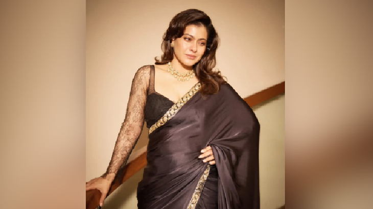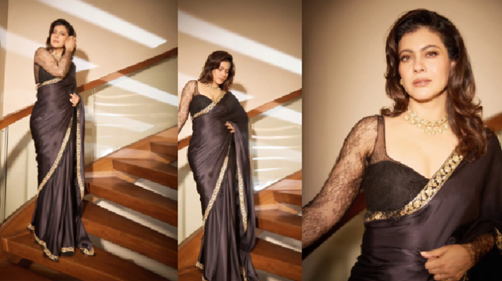 সিঁড়ির ধাপে দাঁড়িয়ে কাজলকে দেখা গেছে কালো সিল্ক শাড়িতে, যা যেন একসঙ্গে আধুনিকতা ও ঐতিহ্যের নিখুঁত মেলবন্ধন তৈরি করেছে। আলোছায়ার নরম ছোঁয়ায় শাড়ির ভাঁজগুলো আরও উজ্জ্বল হয়ে উঠেছে, বাড়িয়ে তুলেছে তার সৌন্দর্যের বহুগুণ।