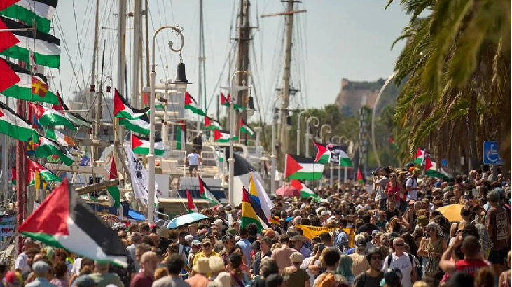 ইতালির প্রধান প্রধান শ্রমিক ইউনিয়ন ফ্লোটিলার সঙ্গে সংহতি জানিয়ে শুক্রবার সাধারণ ধর্মঘটের ডাক দিয়েছে। বৃহস্পতিবার দেশজুড়ে বিক্ষোভ হয়। শুধু রোমেই পুলিশের হিসাবে প্রায় ১০ হাজার মানুষ রাস্তায় নেমে স্লোগান দেয়—‘আমরা সবকিছু বন্ধ করে দিতে প্রস্তুত, গণহত্যার যন্ত্র এখনই থামাতে হবে।’