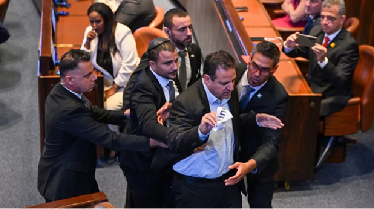 সোমবার (১৩ অক্টোবর) নেসেটে এ বিরল ঘটনাটি ঘটে। পরিস্থিতি উত্তপ্ত হয়ে উঠলে নিরাপত্তা কর্মকর্তারা হাদাশ পার্টির প্রধান আয়মান ওদেহ এবং তার দলের এক সহকর্মীকে জোরপূর্বক সংসদ ভবন থেকে বের করে দেন।