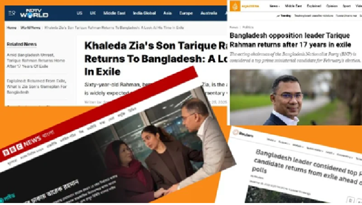 দীর্ঘ ১৭ বছরের নির্বাসিত জীবন শেষে বিএনপির ভারপ্রাপ্ত চেয়ারম্যান তারেক রহমানের বাংলাদেশে ফেরার ঘটনাটি আন্তর্জাতিক সংবাদমাধ্যমে ব্যাপক গুরুত্বের সাথে প্রচার করা হয়েছে। রয়টার্স, এএফপি, বিবিসি এবং আল-জাজিরার মতো শীর্ষস্থানীয় গণমাধ্যমগুলো তার এ প্রত্যাবর্তনকে বাংলাদেশের আগামীর রাজনীতির জন্য একটি ‘টার্নিং পয়েন্ট’ হিসেবে বর্ণনা করেছে। অধিকাংশ গণমাধ্যমই তাকে আগামী নির্বাচনে বাংলাদেশের ‘সম্ভাব্য প্রধানমন্ত্রী’ হিসেবে অভিহিত করেছে।