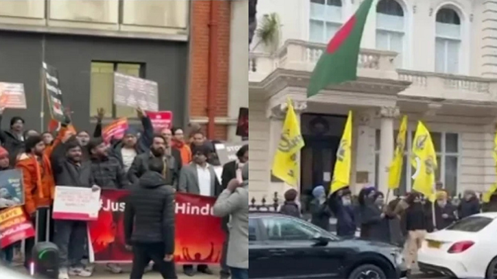 লন্ডনে বাংলাদেশ হাইকমিশনের সামনে হিন্দুত্ববাদীদের বিক্ষোভ