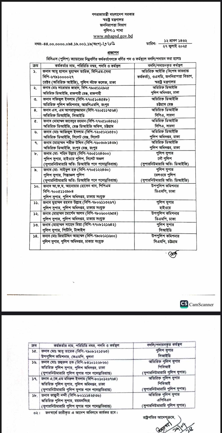 প্রজ্ঞাপনে বদলিকৃত কর্মকর্তাদের পূর্ণ তালিকা শিগগিরই প্রকাশ করার কথা জানানো হয়েছে।