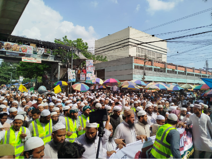 শুক্রবার (১৯ সেপ্টেম্বর) জুমার নামাজ শেষে জাতীয় মসজিদ বায়তুল মোকাররম প্রাঙ্গণ থেকে জাতীয় ওলামা মাশায়েখ আইম্মা পরিষদের ব্যানারে বিক্ষোভ মিছিল বের হয়। পরে মিছিলটি রাজধানীর বিভিন্ন সড়ক প্রদক্ষিণ করে।