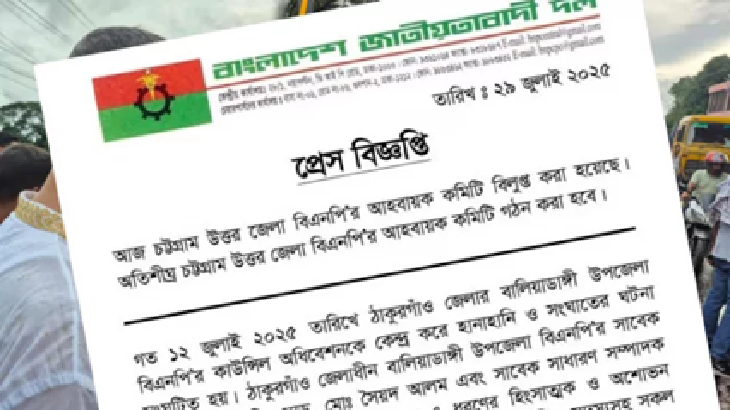 উত্তর জেলা কমিটি বিলুপ্ত ও গিয়াস কাদেরের পদ স্থগিত