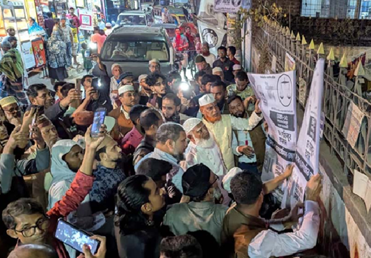 নিজ হাতে ব্যানার-ফেস্টুন সরাচ্ছেন জামায়াত আমির
