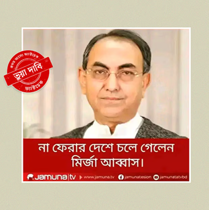 ফ্যাক্ট-চেকিং সংস্থা রিউমর স্ক্যানার জানায়, মির্জা আব্বাস জীবিত আছেন এবং চিকিৎসাধীন অবস্থায় তার শারীরিক অবস্থার উন্নতি হয়েছে। তার মৃত্যুর খবর সম্পূর্ণ মিথ্যা।