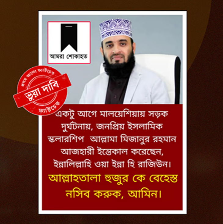 একই ধরনের গুজব ছড়ানো হয় আলোচিত ইসলামি বক্তা মিজানুর রহমান আজহারী-কে ঘিরেও। দাবি করা হয়, সড়ক দুর্ঘটনায় তিনি মারা গেছেন। এমনকি একটি ‘হাসপাতালের ছবি’ও ছড়িয়ে দেয়া হয়।