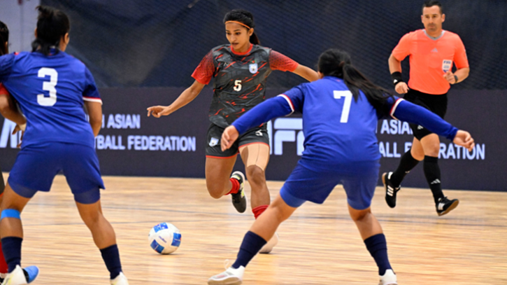 সাফ নারী ফুটসাল চ্যাম্পিয়নশিপে নেপালকে ৩-০ গোলে হারিয়ে আবারও জয়ের স্বাদ পেয়েছে বাংলাদেশ নারী দল। সোমবার (১৯ জানুয়ারি) টুর্নামেন্টে নিজেদের তৃতীয় ম্যাচে দাপুটে পারফরম্যান্সে লাল-সবুজের প্রতিনিধিরা প্রমাণ করেছে, শিরোপা লড়াইয়ে তারা এখনও শক্ত অবস্থানেই আছে।