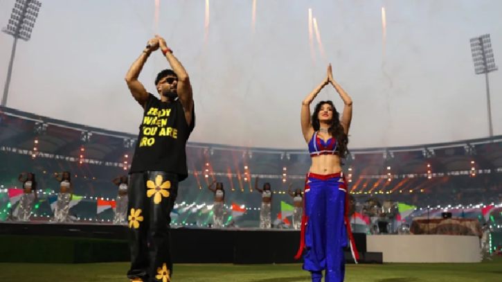 মুম্বাইয়ের ওয়াংখেড়ে স্টেডিয়ামে টি-টোয়েন্টি বিশ্বকাপের উদ্বোধনী আয়োজন দেখে বোঝার উপায় নেই, এবারের আসর কতটা বিতর্ক আর অনিশ্চয়তার ভেতর দিয়ে শুরু হয়েছে। আলোর ঝলকানি, সুর আর নাচে জমে ওঠা অনুষ্ঠান মাতিয়েছেন বলিউড তারকা নোরা ফাতেহি ও জনপ্রিয় র‍্যাপার বাদশা। নোরার পারফরম্যান্সে গ্যালারিজুড়ে উচ্ছ্বাস, মঞ্চজুড়ে রঙিন আয়োজন—সব মিলিয়ে বিশ্বকাপের দশম আসরের পর্দা ওঠে জমকালো পরিবেশে।
